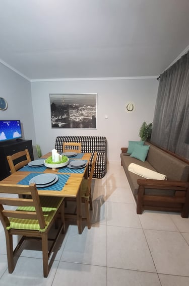 Удобно настаняване до 6 души – 2 уютни спални + дневна с разтегателен диван.